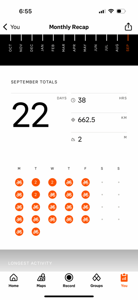 I commuted at least once every weekday in September. And I rested my body from riding on every weekend when I walked in the morning for about an hour. I need to get exercise in some form each day.