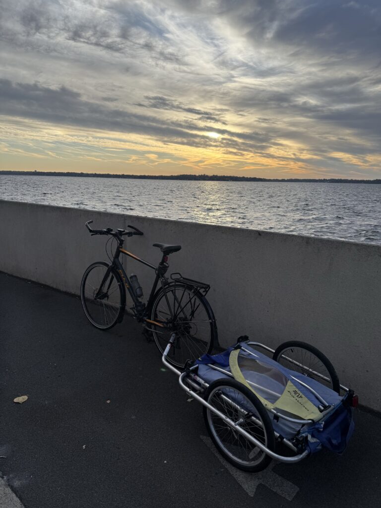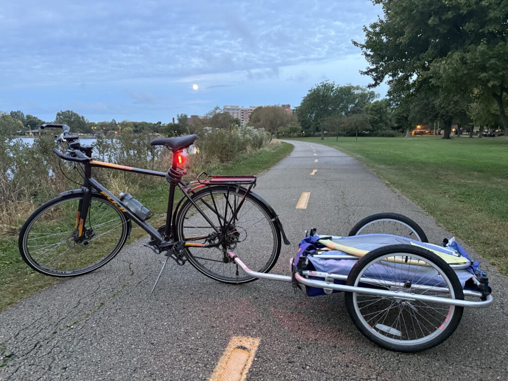 Passing is a call to challenge. Game on. I quietly closed the gap that had developed between us and passed her with trailer and all and held until she turned off onto another street. The experience was invigorating as I pushed myself hard but not too hard.