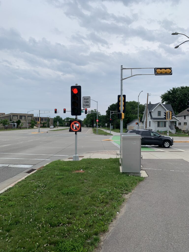 A major concern was the “right hook” to my left where cars illegally make right turns on red and can hit other users who aren’t being vigilant leaving the curb onto the crosswalk.