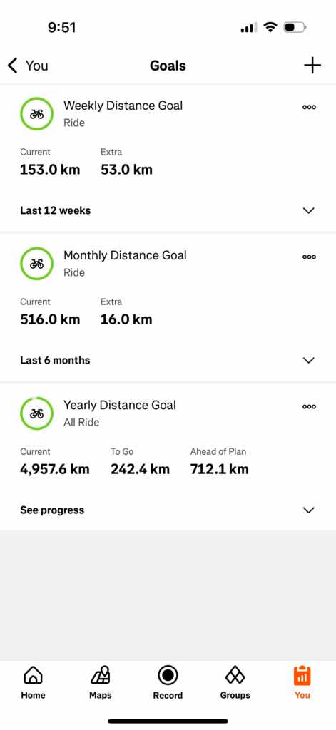 I’m doing well on reaching and surpassing goals plus being well ahead of my yearly goal. The catalyst has really been changing my commute from four 1-mile legs to four 5-mile legs 100 miles per five-day week. Pulling a trailer on a “tank”of an aluminum bicycle during the week, I enjoy resting and using walking muscles on weekends.