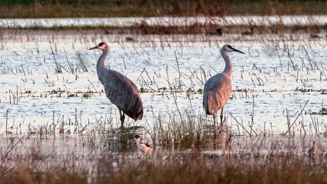 A sandhill crane had landed way out in the center of the bay. Their call breaks through the ice and into spring.